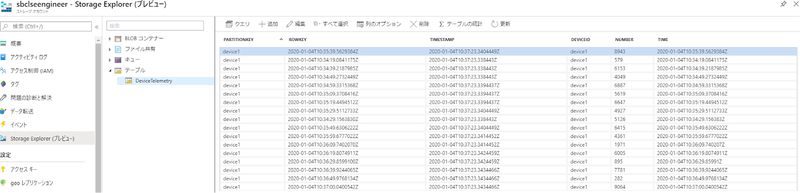 さらに、テーブル ストレージに格納されていることが Storage Explorer から確認できるでしょう。