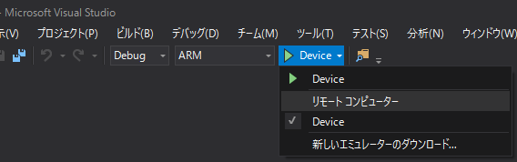 Visual Studio ではデバイス上に直接アプリケーションをデプロイできます。ソリューションプラットフォームを ARM に設定した上で、ターゲット デバイスに リモート コンピューター を選択してください。