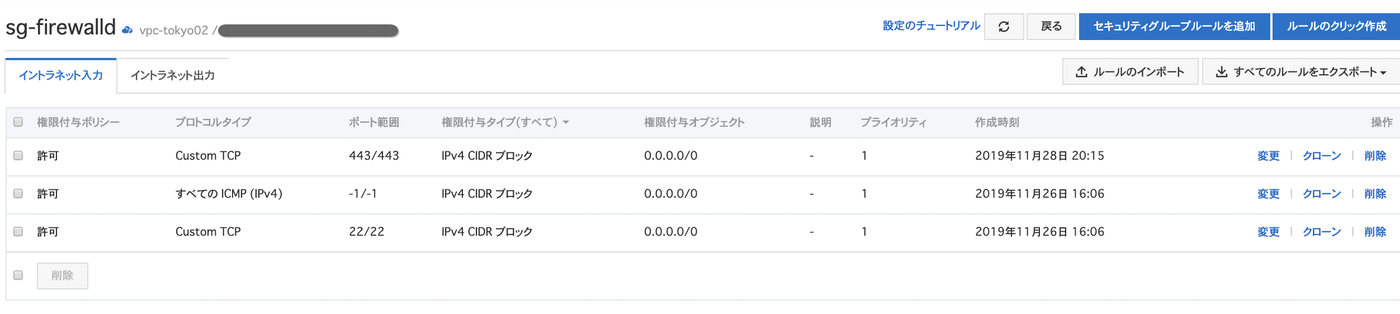 | NATサーバ | nat01 | 日本東京(ゾーンB) | ecs.t5-lc1m1.small | 1vCPU 1GiB | 10.68.30.153 |