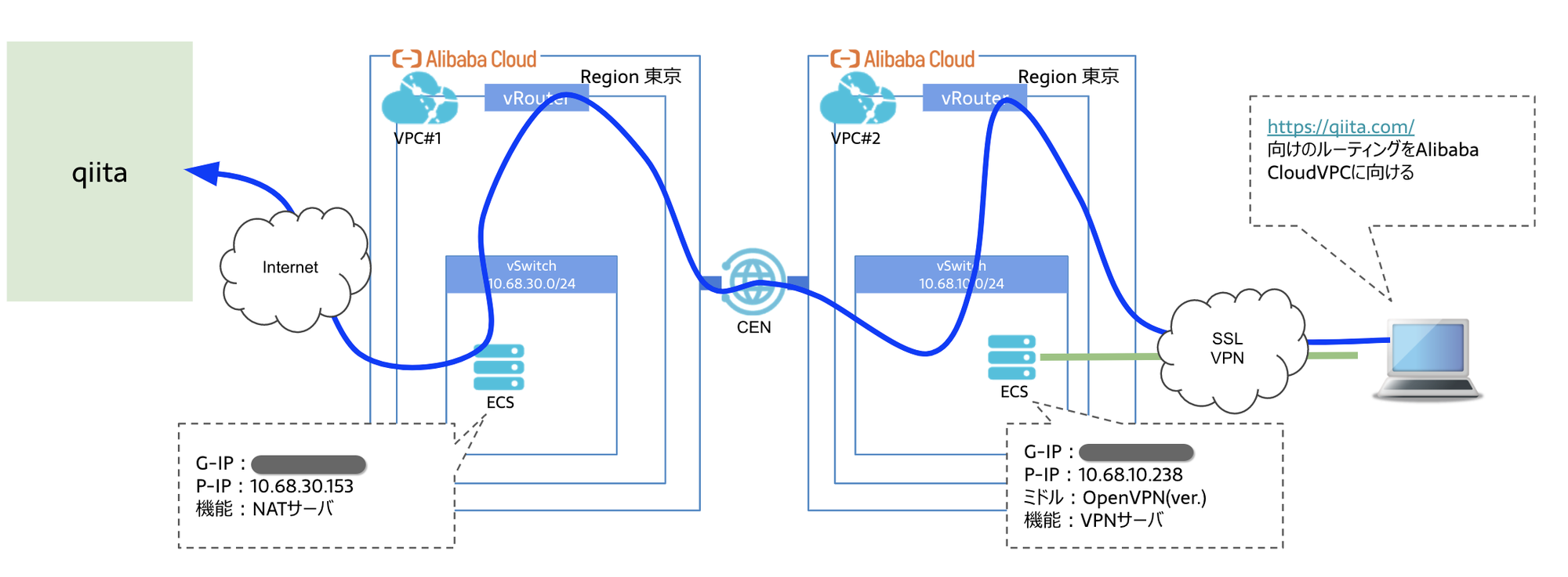 今回は、特定のドメインやG-IP向けの通信経路だけAlibaba Cloud網を通したいときの手段として検証してみました。
