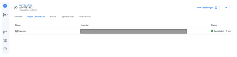Dataprep のJob一覧から、詳細画面に遷移し、Output Destinationsをクリックすると、Locationの項目で格納先を確認できます。