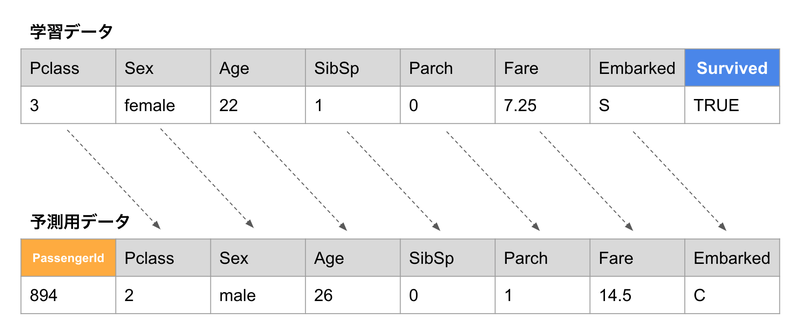 データ分析パートでは、用意した学習データが予測したい対象(生存するか、しないか)とどのような関係があるかを分析しました。今回は新しく特徴量の追加は行いませんが、実際のビジネスではここでデータ収集のプロセスに戻ることもよくあります。