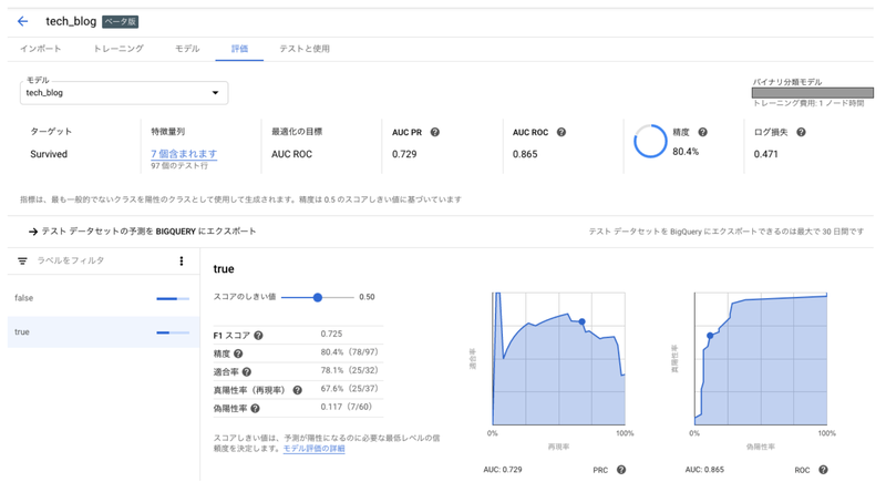 モデルの評価 | AutoML テーブル