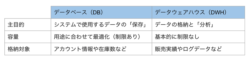 BigQuery はGCPの中で「データウェアハウス(DataWaraHouse、DWH)」と呼ばれるサービスです。データウェアハウスとは、データ分析を主目的とした、データの格納を行うサービスを一般に指します。