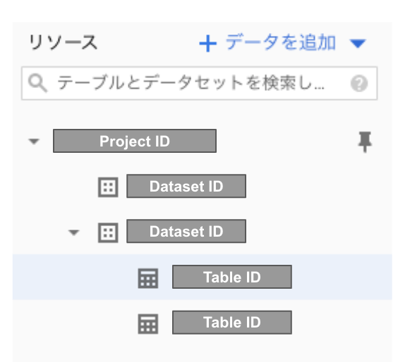 それぞれのIDはBigQuery の画面左側から確認できます。