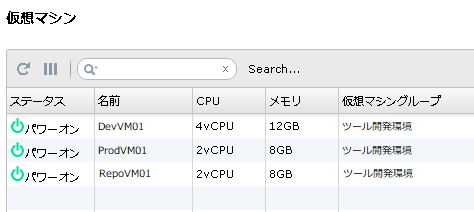 仮想マシングループ内で、開発環境が構成されていることが確認できます。