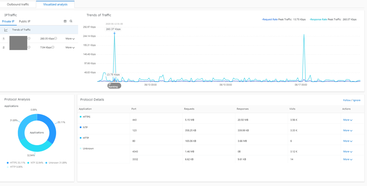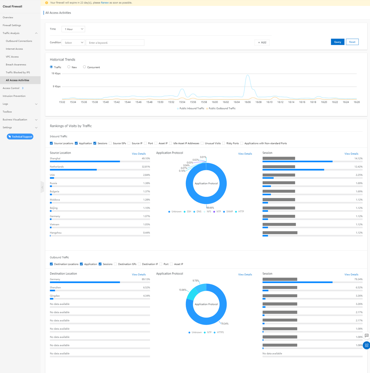 正常、異常なアクティビティ、トレンドチャート、Inbound / Outboundトラフィック両方のトラフィック訪問ランキングを表示します。