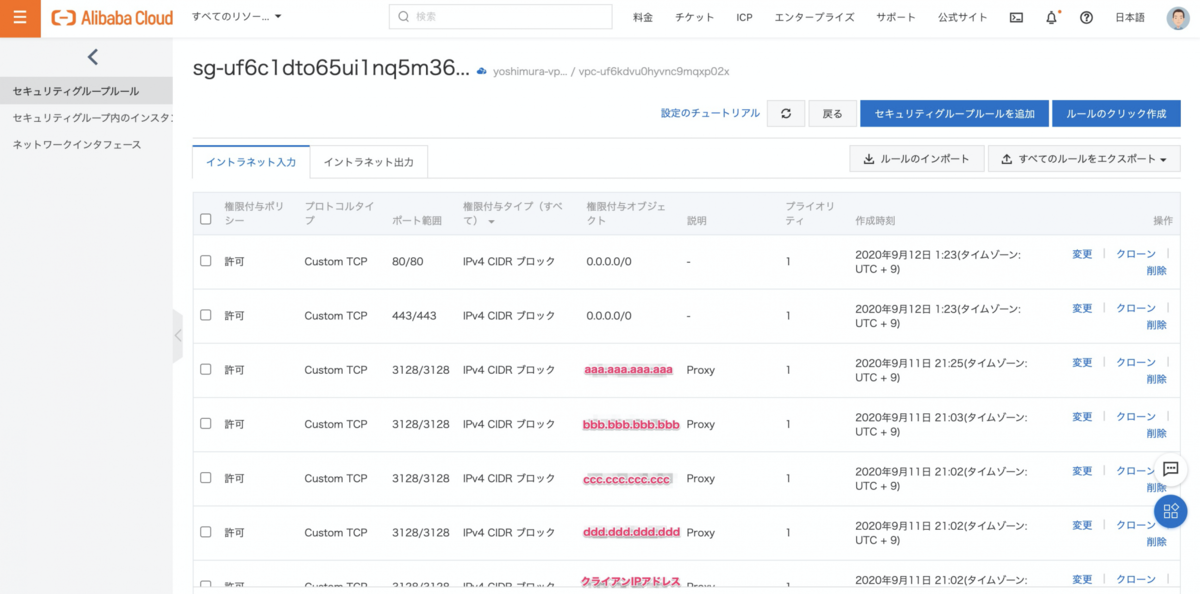 最後に、GAのエンドポイントグループIPと、クライアントのIPアドレスをECSのセキュリティグループに追加しましょう。