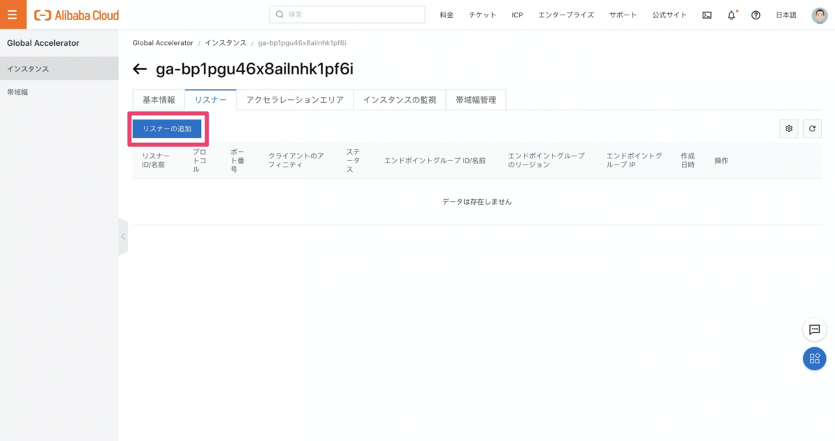 リスナータブから「リスナーの追加」をクリック