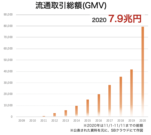 ちなみに、この数字がどのくらいの規模かというと、楽天の国内EC流通総額が年間で約3.7兆円(楽天IR資料より)、国内通販売上高ランキングの上位300社合計売上高が「約7.6兆円」(通販新聞社調査)という数値です。この規模を11日間で達成してしまうとはものすごいですよね。