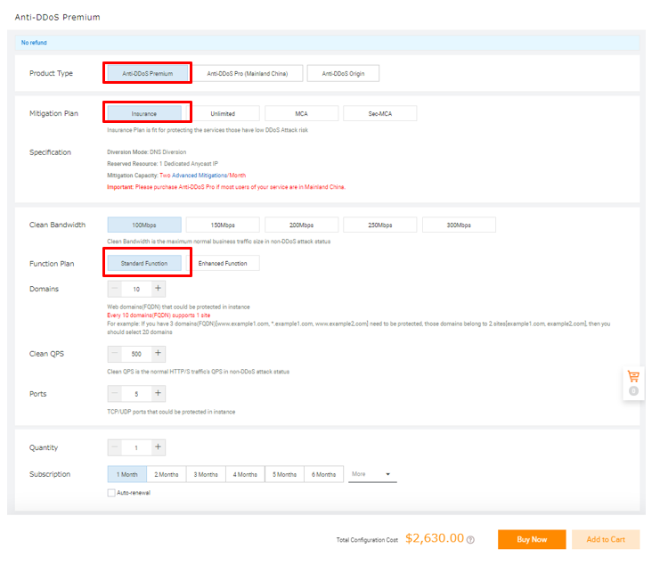 無償版のAnti-DDoS Basicでは防御能力も限られており、ブラックホールに陥る懸念がありますので、 Webサイトの規模や重要度に合わせてAnti-DDoS Premiumの導入をご検討ください。