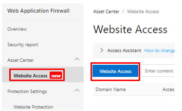 1-1 WAFコンソールにて、Website Access > Website Access ボタンをクリックします。