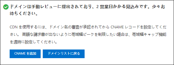 【CDN設定】 ドメイン名 > ドメイン名の追加をクリック