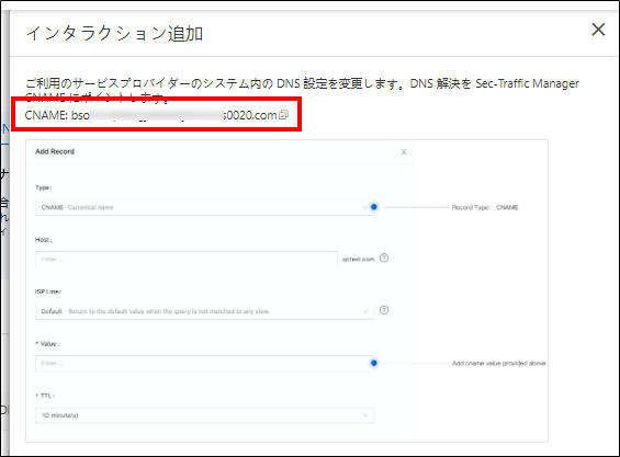 5.ネームサーバにドメイン設定をする(Security-Traffic-ManagerのCNAMEを登録)