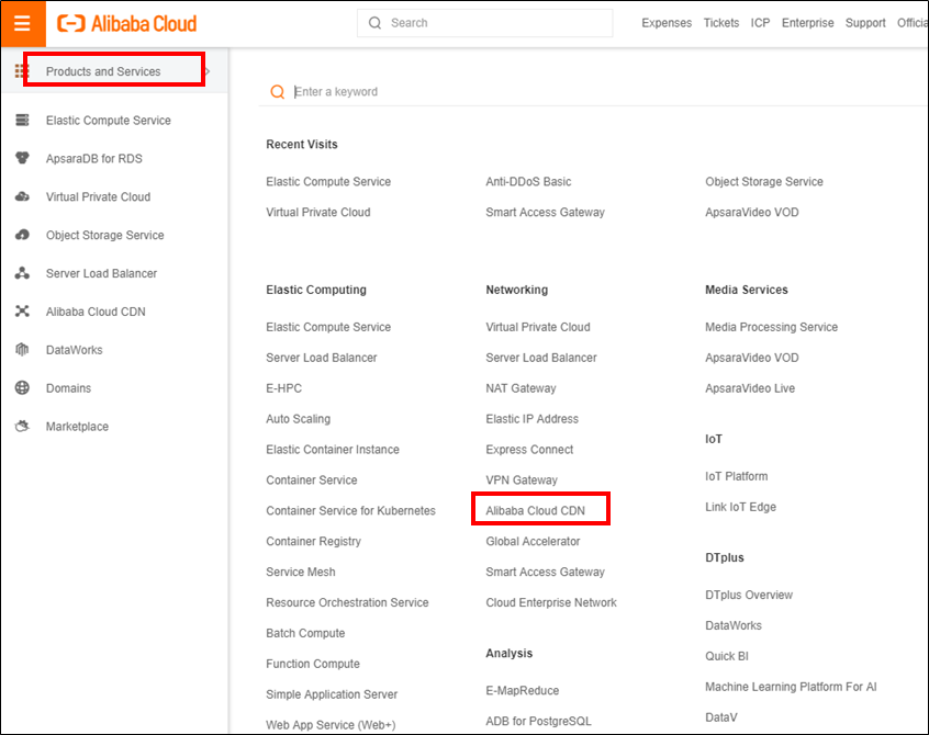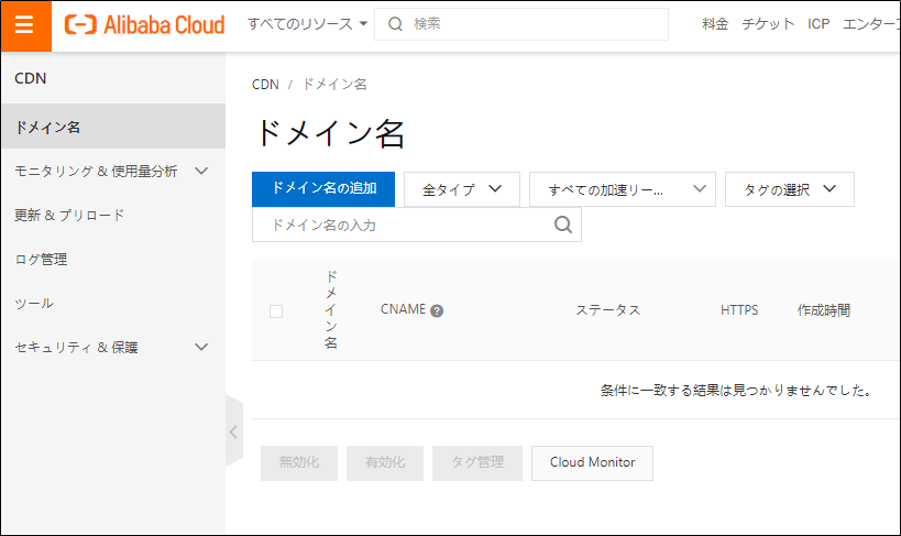 Alibaba Cloudコンソール > Alibaba Cloud CDN をクリック