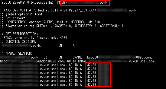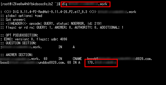 【確認】登録したドメインがAnti-DDoSのSecurity-Traffic-ManagerのCNAMEで名前解決されるか確認します。