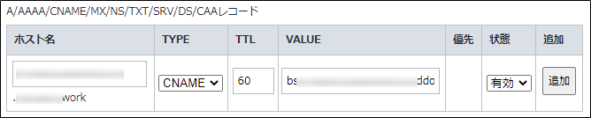 【DNS登録②】お名前ドットコムにログインし、DNSレコード登録画面で先ほどコピーしたSecurity-Traffic-ManagerのCNAMEを登録します。