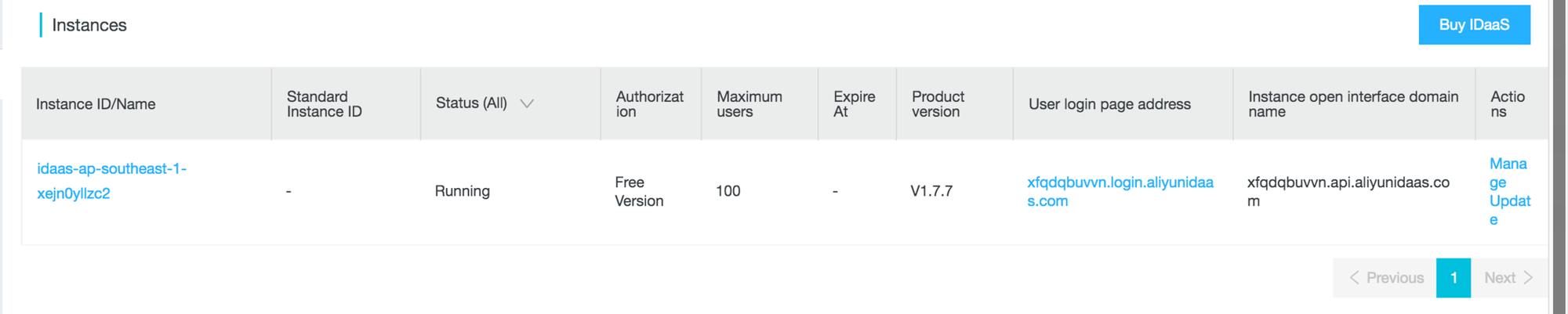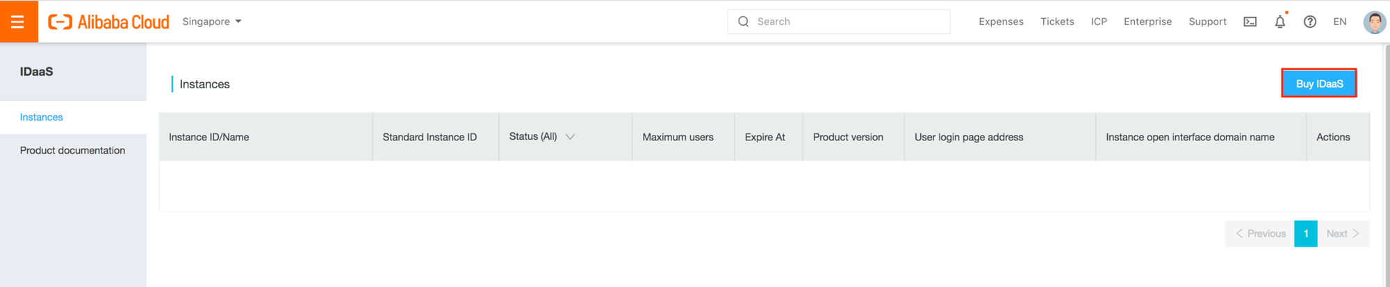 ちゃんとIDaaSのコンソール画面が開きましたね。右側にある[Buy IDaaS]ボタンを押してインスタンス作成を進めます。