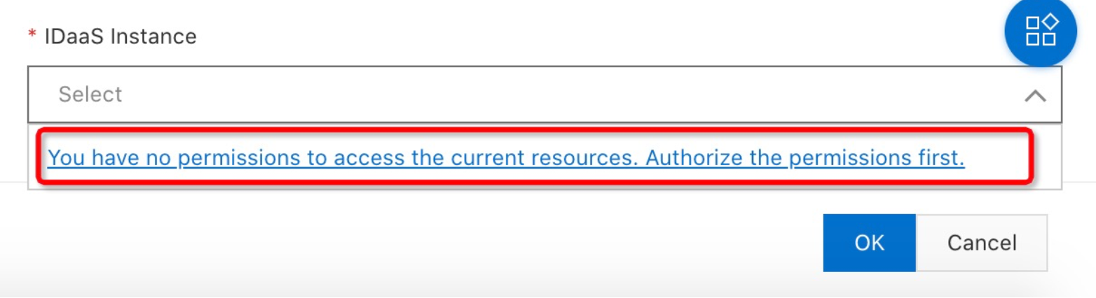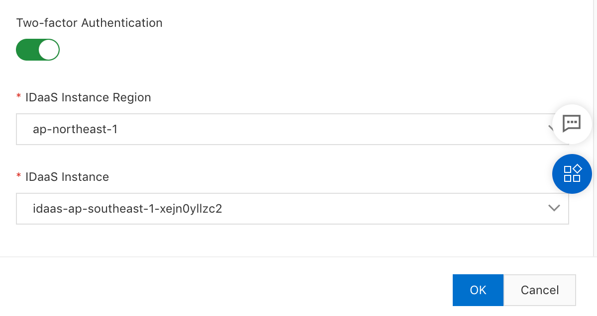 6.「IDaaS Instance」から先ほど作成したIDaaSインスタンスを選択してOKをクリックして設定を完了する。