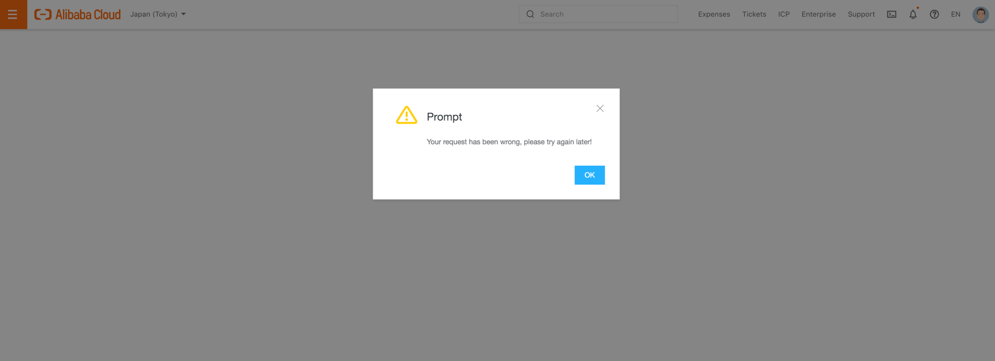プロダクトのコンソール画面へ遷移すると、このようなエラーが表示されるかもしれません。