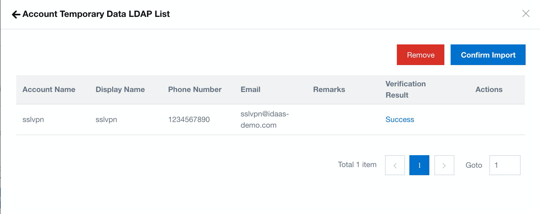 3.ユーザの追加が成功すれば、各ユーザのVerification Result列に「Success」と表示される。画面右上の「Confirm Import」ボタンをクリックしてインポートを完了させる