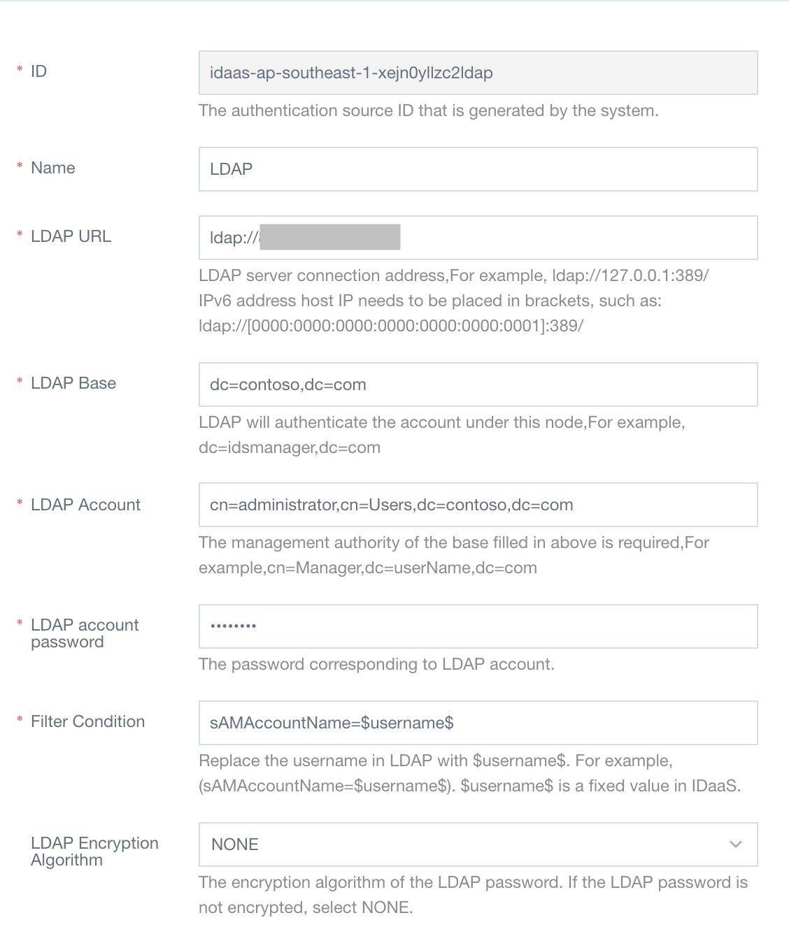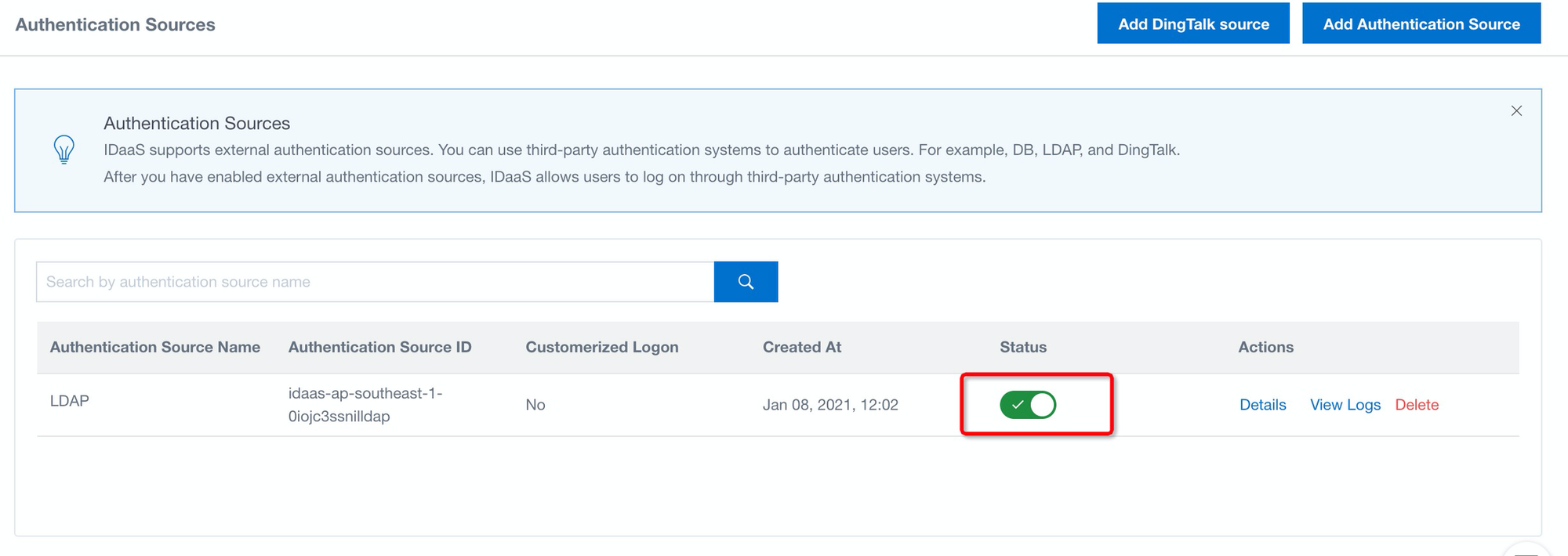 設定が完了すると、Authentication Source Nameの一覧に「LDAP」が追加されます。