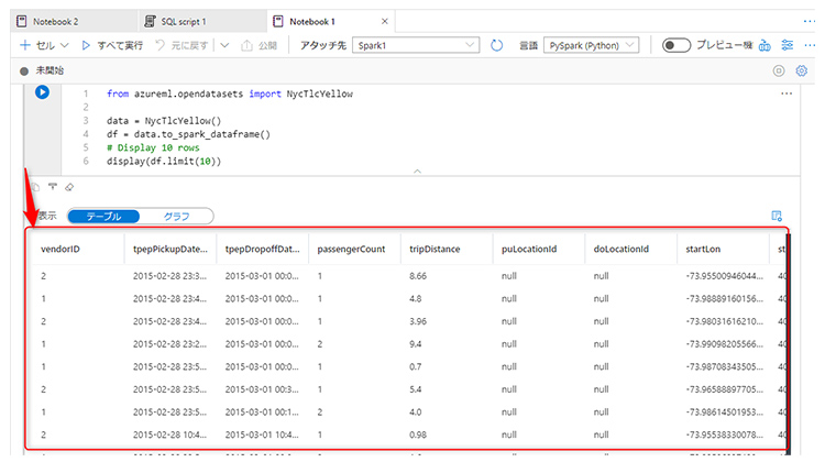 ドキュメントの手順を一通り進めると、NYCタクシーデータを活用した、SQL分析、PySpark分析、PowerBIとの統合などを一通り試すことが出来ます。