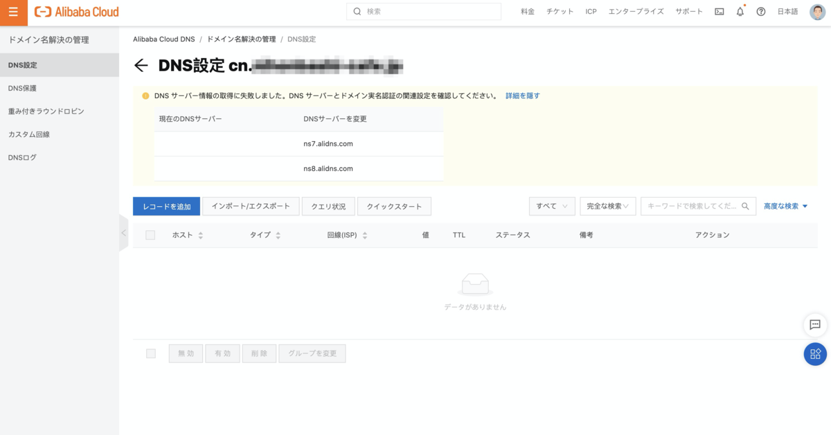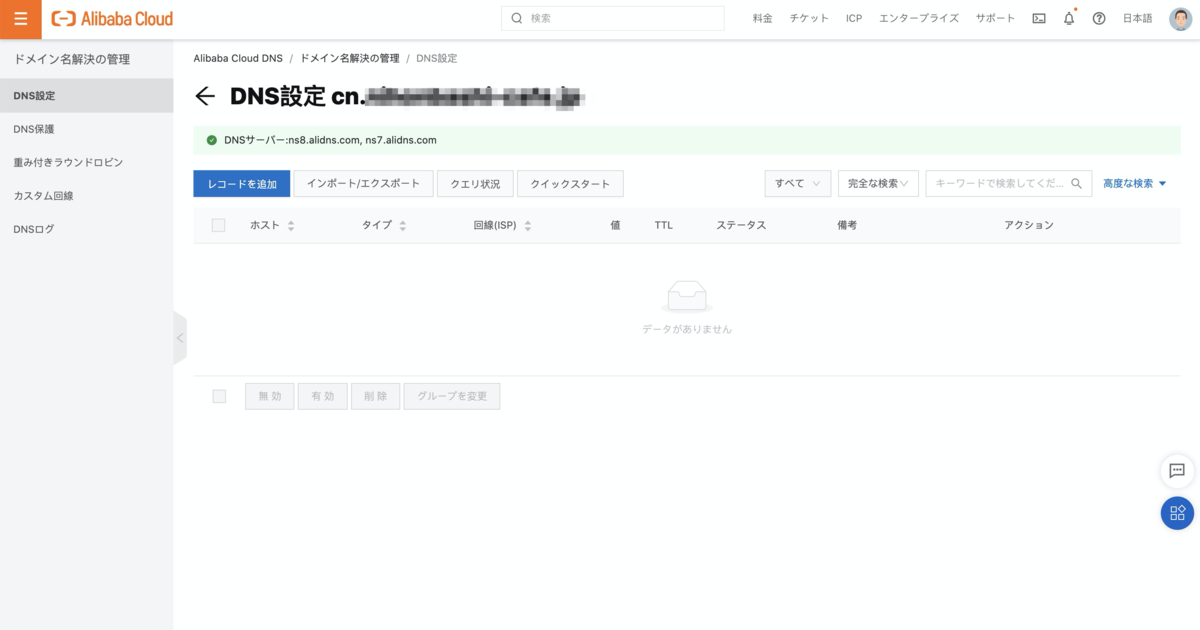Alibaba Cloud DNS は無料プランもあるので、お得に利用できます。