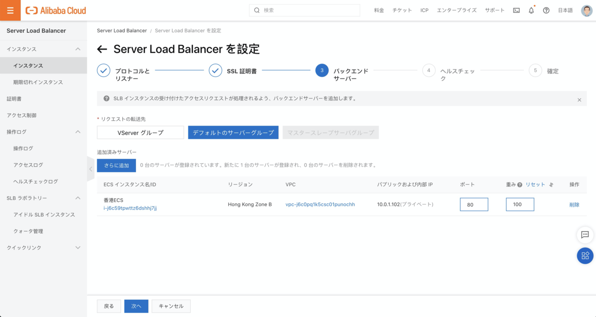 *以下の画像例はECSのヘルスチェックエラーでSLBの502が出ています。これはAlibaba Cloud SLBがNginxをフォークしたオープンソースTengineを利用しているためです。
