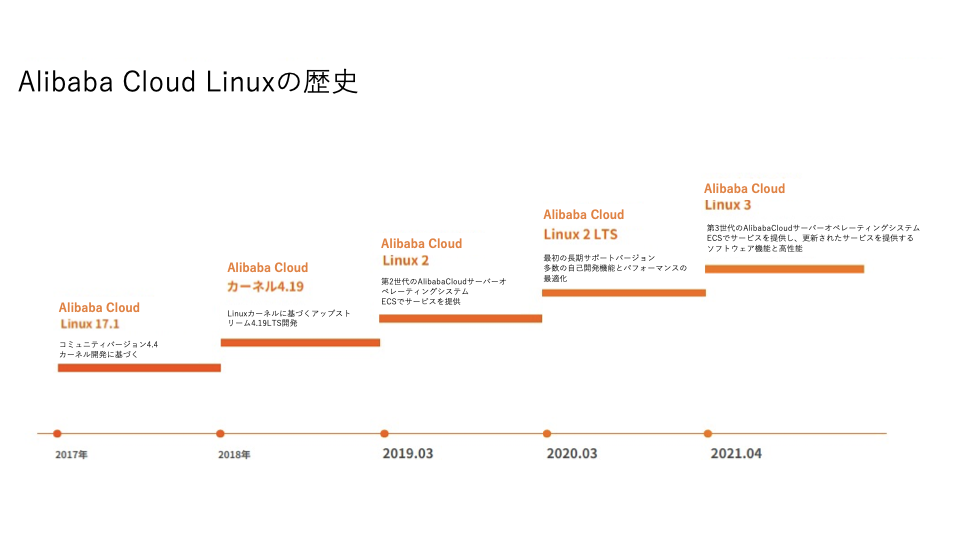 2019年 Alibaba Cloud Linux 2リリース、その後LTS(Long Term Support)提供と順当なアップデートがされてきています。