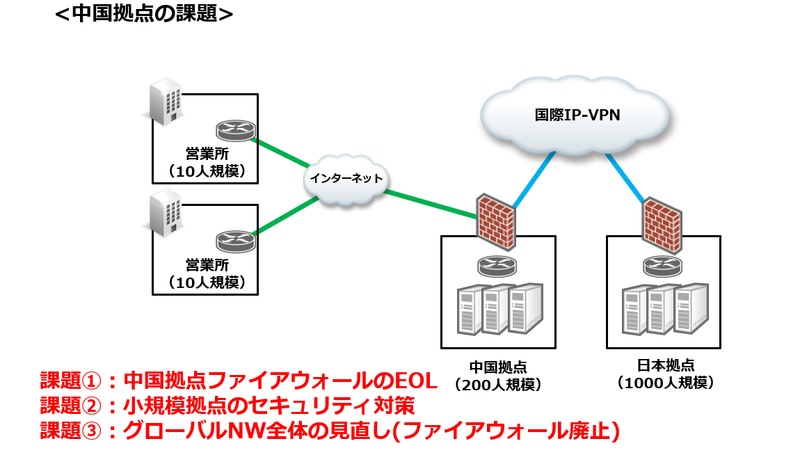 中国の中心拠点のファイアウォールがEOLを迎える一方で、全社的にゼロトラストモデルへの移行も検討しているため、「物理ファイアウォールの更新にコストをかけるよりも、次世代のゼロトラストモデルへ移行が望ましいのではないか」という悩みを抱えていました。