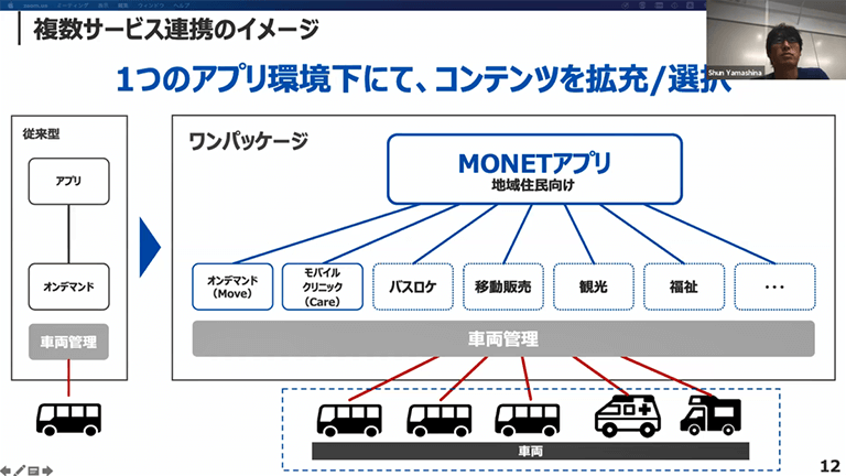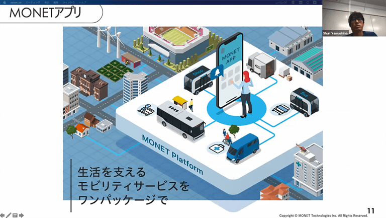 MONETプラットフォームの上に、人やモノ、サービスの移動をワンパッケージで提供するプラットフォームとなっています。』