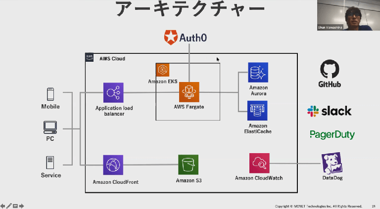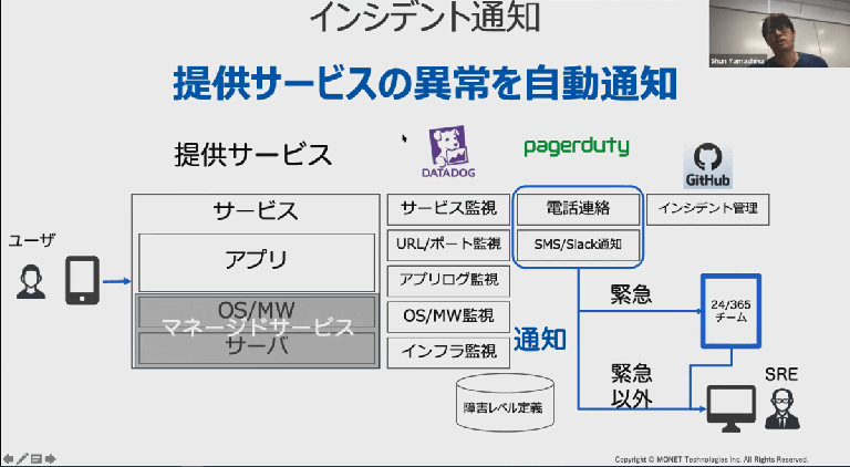『インシデント通知も、リアルタイムな通知をPagerdutyを使って実現できています。マネージドサービスを使うことで管理個所を少なくし、アプリに集中することができています。』