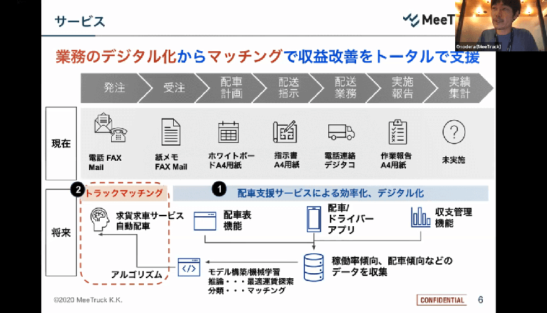 今後はトラックマッチングサービスとして、荷物を運んでほしい人と、空いているトラックをマッチングさせるアプリケーションを検討しています。』