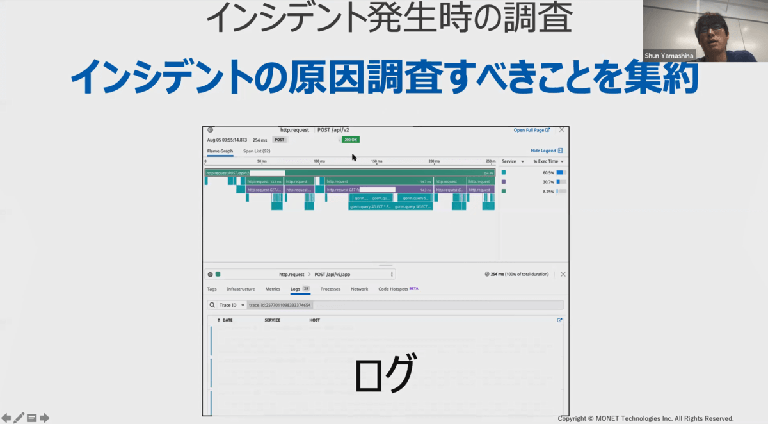 『集約して可視化することで被疑箇所を素早く特定でき、ログを追って原因特定までスピーディに対応できます』