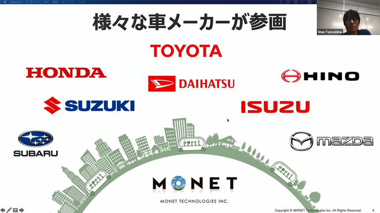 『さらに、トヨタ以外にも、ホンダ、スバル、ダイハツなど様々な主要車メーカーが参画して、オールジャパンという形でやっているのがMONETです』