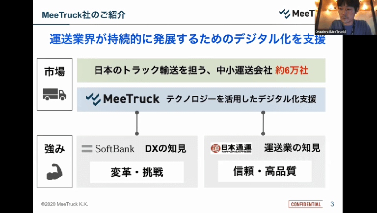 『MeeTruckはソフトバンクと日本通運のジョイントベンチャーとして、2020年4月に誕生した会社です。