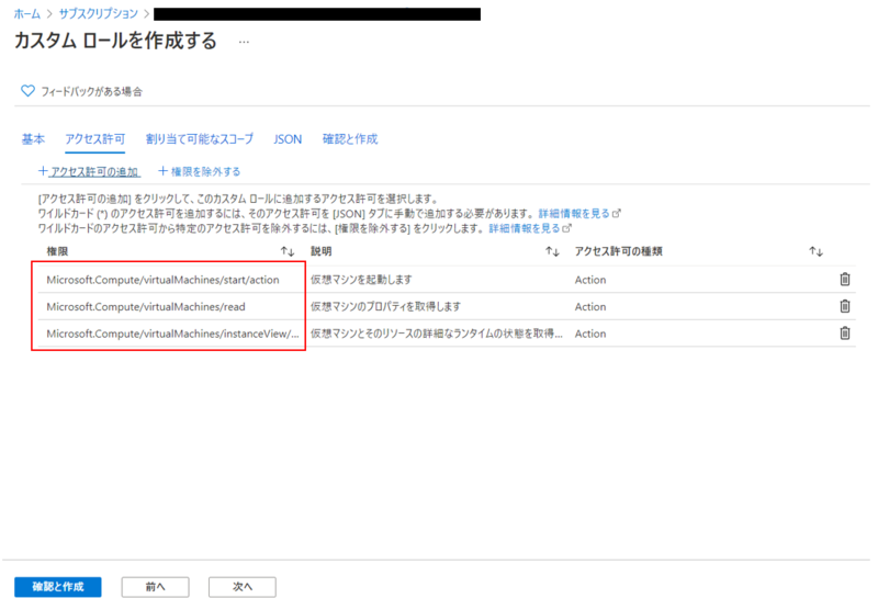 「アクセス許可」では、下記3つの権限を追加します。