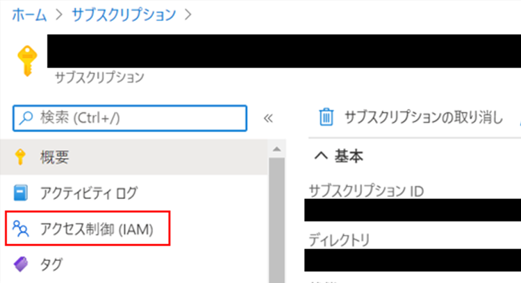 「アクセス制御(IAM)」をクリックします。