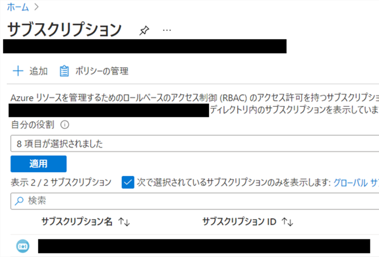 Azure Portalにログインした後、サブスクリプションのページに移動します。