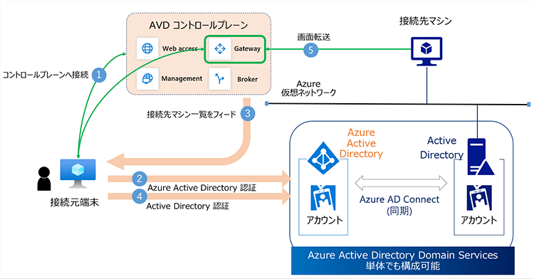 余談ですが、Azure Virtual Desktopへの接続では「Azure Active Directory」と「Active Directory」の認証が必要となります。