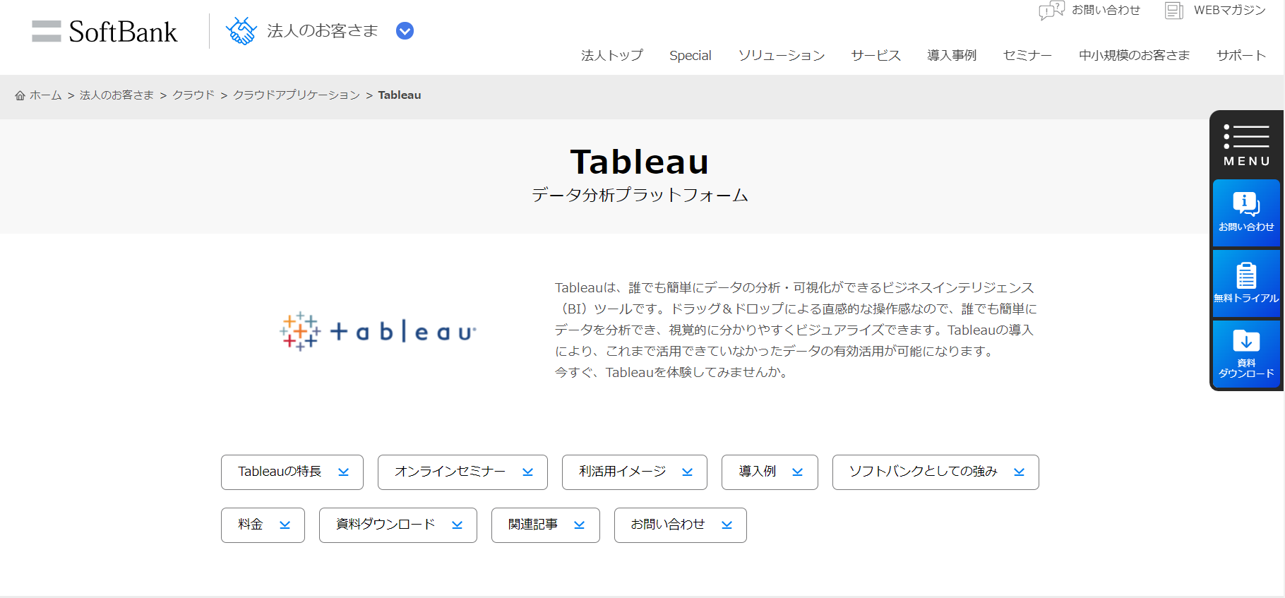 Tableau に関してご興味のある方はぜひ、ソフトバンク法人向けページよりお問い合わせください。