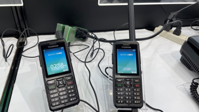 Interopでの展示は、ソフトバンクが提供するNTN(非地上系ネットワーク)ソリューションのうち、低軌道衛星を使った大容量衛星通信サービス OneWebと、静止衛星を使った衛星電話 Thurayaです。