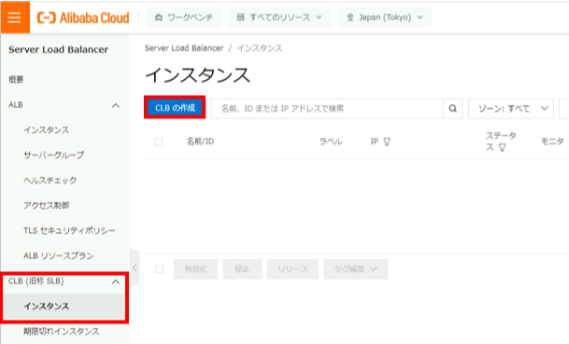 Alibaba CloudはロードバランサをSLB(Server Load Balancer)というプロダクト名で、ALB(Application Load Balancer)とCLB(Classic Load Balancer)の2種類のロードバランサが提供されています。