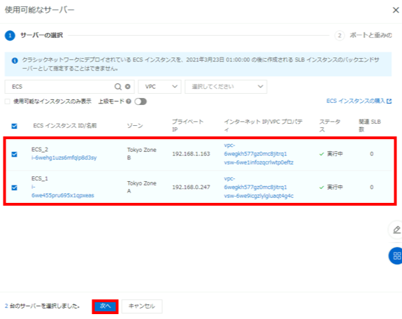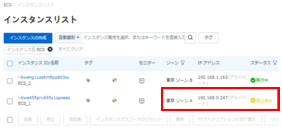 TokyoリージョンのZoneA / Bにそれぞれ1台ずつECSインスタンスを作成します。
