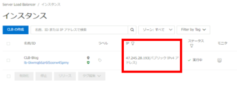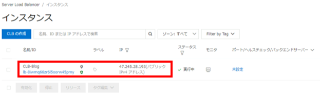 ※CLBのIPはCLBインスタンスの画面から確認出来ます。