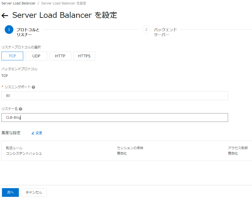 表示されたリスナーの【ポート】の設定項目に 80 を入力します。