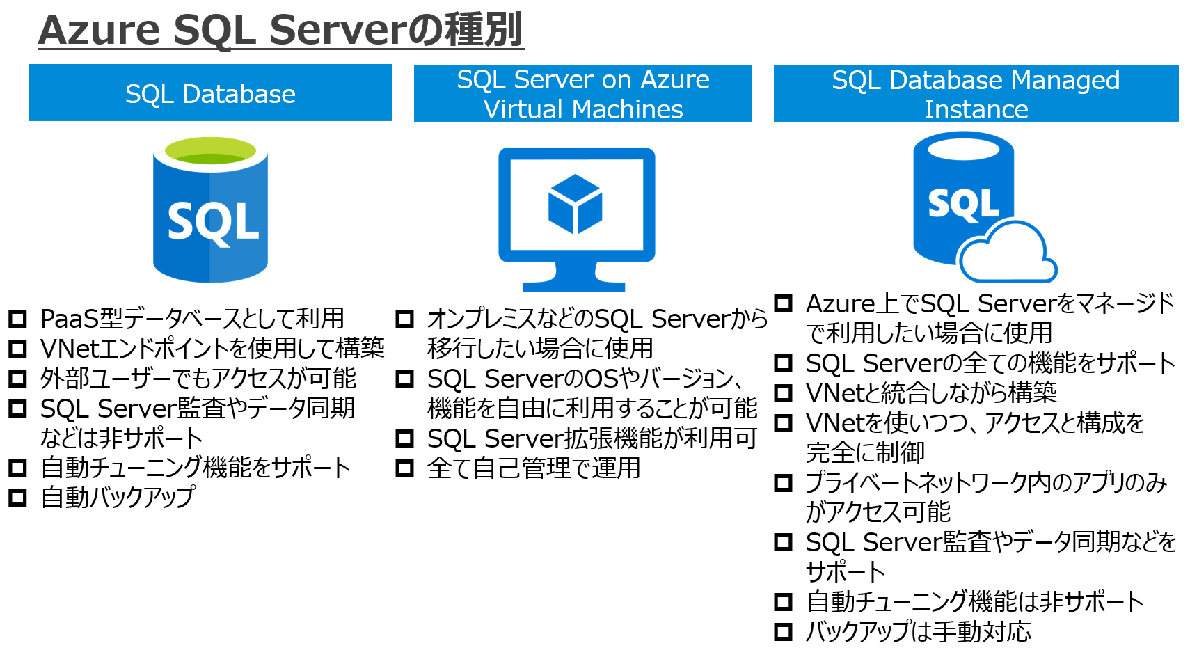 ※AzureのSQL Server系はIaaS型リレーショナルデータベースとして包括されているため、こちらは本記事の後半にて紹介します。