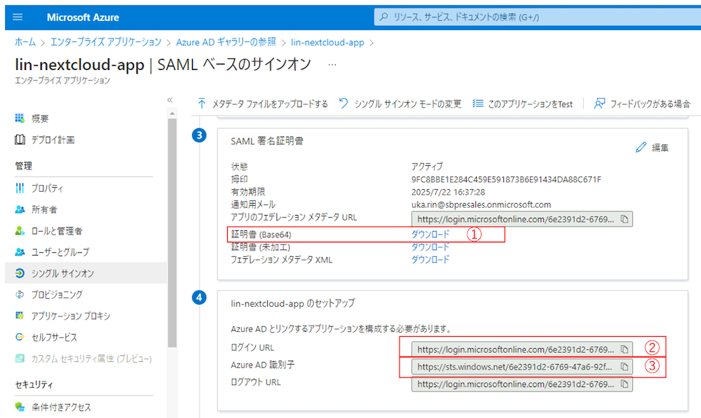 識別子:https://k8s2nextcloud.sbcicp1.net/apps/user_saml/saml/metadata