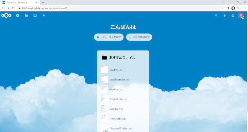 認証が無事成功した後、Nextcloudの画面が表示されます。
